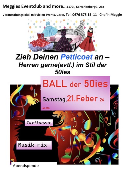 „Wanna Dance?“ ist DAS Tanzerlebnis und DIE perfekte Ergänzung zu Tanzschulen und Bällen! Garant für einen Abend zum Wohlfühlen ist das der Tanzfläche angepasste Kartenkontingent für mehr Platz zum Tanzen sowie der von unseren erfahrenen Tanz-DJs gespielte, mitreißende Tanzmusik-Mix aus 6 Jahrzehnten! Mit bis zu 10 verschiedenen TOP-Veranstaltungsorten bieten wir eine einzigartige Vielfalt in Österreich. Liebe zu qualitativen Details, professionelles Sound- und Lichtequipment, kulinarische Schmankerl und unser tanzbegeistertes, stets um Sie bemühtes „Wanna Dance?“-Team werden auch Sie überzeugen!