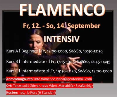 FLAMENCO Wochenend-Intensiv-Workshops vom 12.-14. September. Intensives Flamenco-Training für BEGINNER – INTERMEDIATE LEVELS.