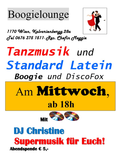 Boogie und Standard Latein für flotte Tänzer am Mittwoch! Musikbeitrag 5,-